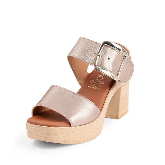Esta sandalia destaca por su suela tipo plataforma en tono natural con textura que imita...
