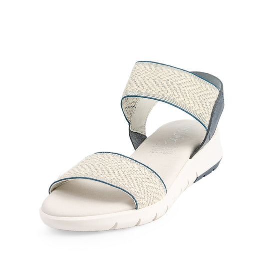 Diseño funcional con un twist moderno- Esta sandalia bicolor combina texturas suaves y tonos neutros...