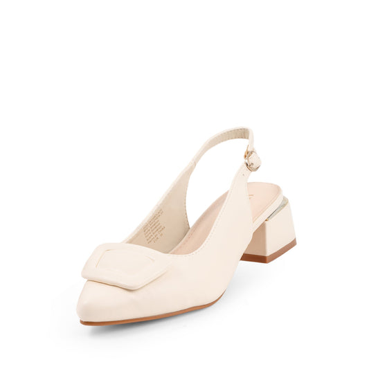 Diseño sobrio con toque glam- Este slingback de tacón medio combina un cuerpo nude minimalista...