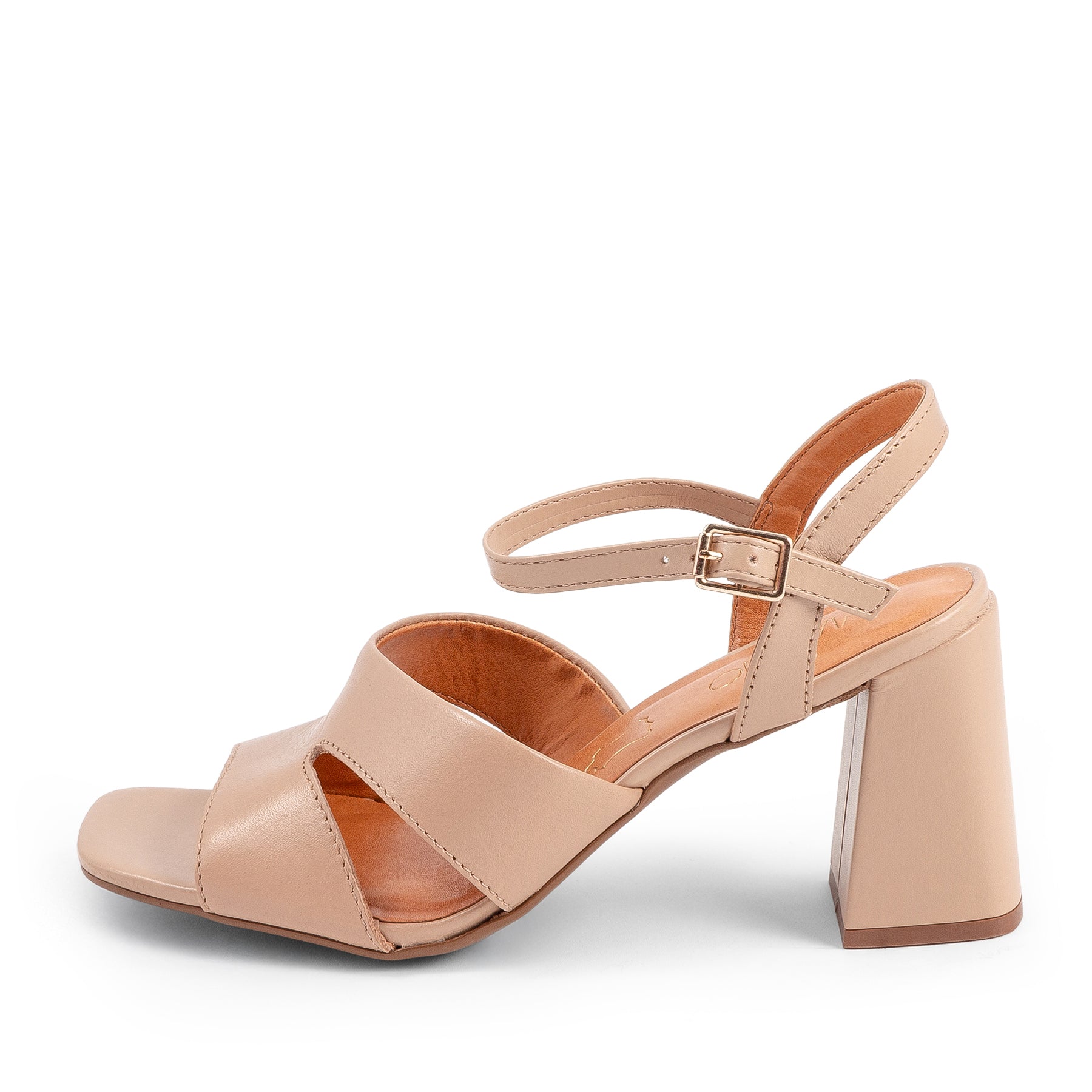 Fuerza y sofisticación en un mismo diseño- Esta sandalia de tacón bloque presenta tiras cruzadas de acabado mate que envuelven el empeine con firmeza, mientras su talón abierto añade ligereza visual- El contraste entre su estructura sólida y su diseño abierto la convierte en la opción perfecta para looks con carácter-