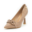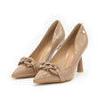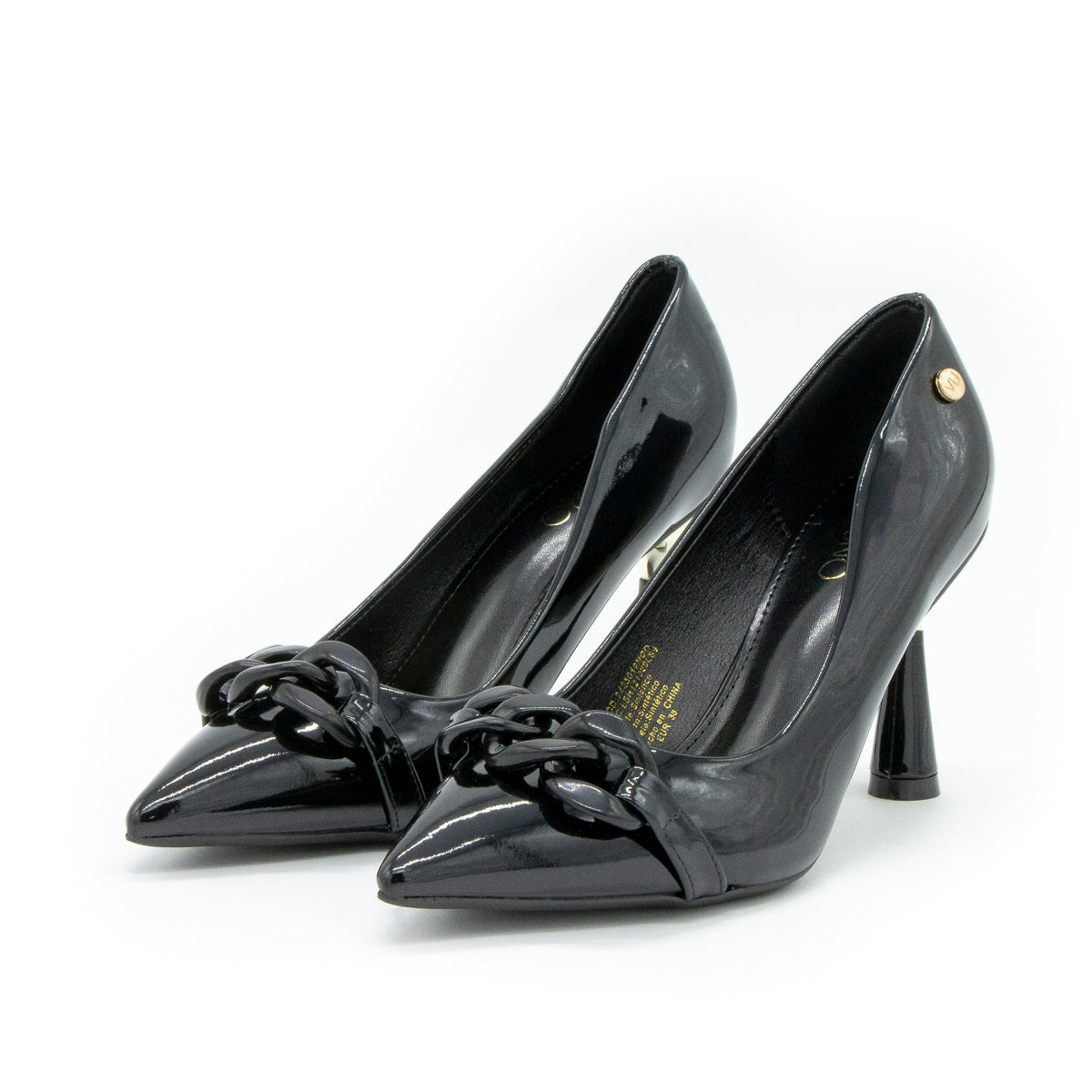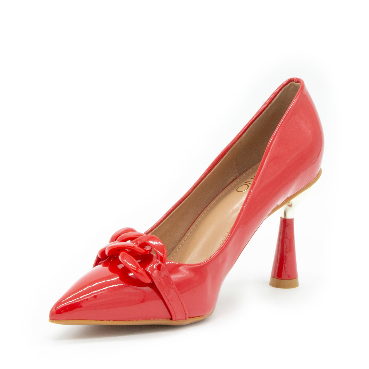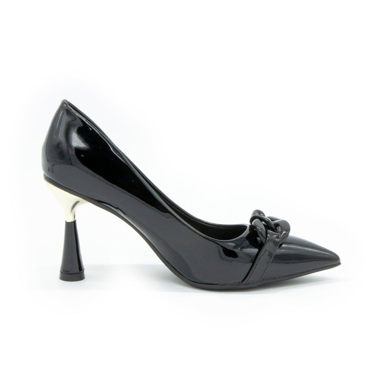 Un clásico renovado. Este elegante stiletto en acabado charol nude cuenta con un detalle de cadena al frente, añadiendo un toque moderno y sofisticado. Su tacón alto y forma puntiaguda estilizan la figura, haciéndolo perfecto para eventos formales o una jornada de oficina chic. Disponible en tonos atemporales y modernos. SKU 2425012